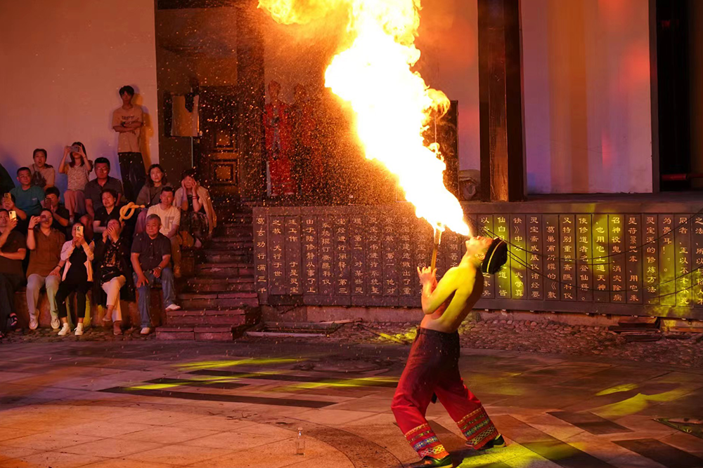 在葛仙村內(nèi),各種特色小店吸引了大家的注意力,激發(fā)了旺盛的購(gòu)買(mǎi)欲。當(dāng)晚,不僅有美輪美奐的燈光秀表演,還有特色的篝火晚會(huì),同事們與當(dāng)?shù)鼐用窈推渌慰蛡円黄疠d歌載舞,為第一天的行程畫(huà)上圓滿的句號(hào)。