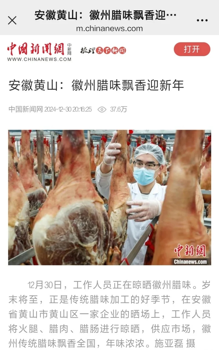 全江臘味晾曬場:徽州臘味飄香迎新年——人民網(wǎng)安徽頻道、中新網(wǎng)聯(lián)合報(bào)道