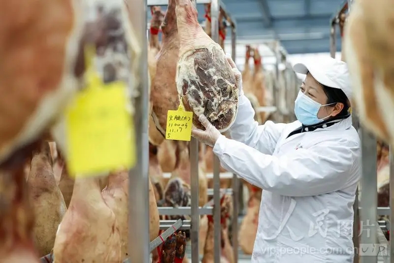 一串串香腸、臘肉、火腿密密麻麻地掛滿橫桿,連日來的晴好天氣讓這些臘味裹上了一層亮晶晶的油膜。工人們忙碌地翻動(dòng)著臘味,查看晾曬情況,確保每一份產(chǎn)品都能達(dá)到更佳的品質(zhì)。